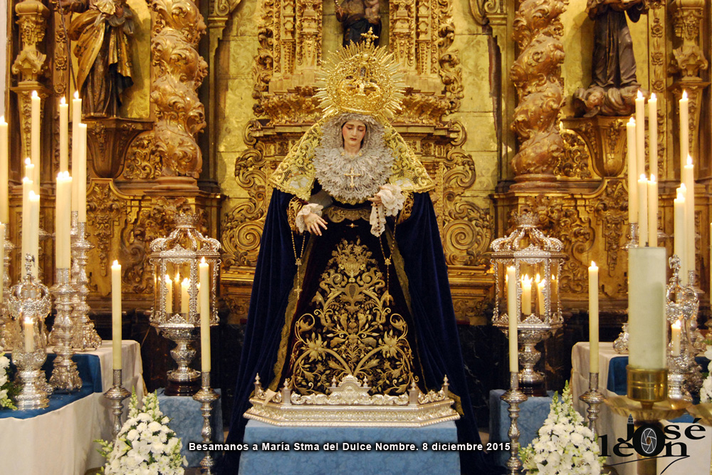 El pasado día 8 de diciembre, festividad de la Inmaculada Concepción, pudimos acercarnos a María Santísima del Dulce Nombre que presidía el altar mayor de nuestra parroquia, en Solemne Besamanos. Os mostramos algunas imágenes tomadas por nuestro hermano José León Torres, al que estamos muy agradecidos por permitirnos, una vez más, disponer de este gran archivo fotográfico.