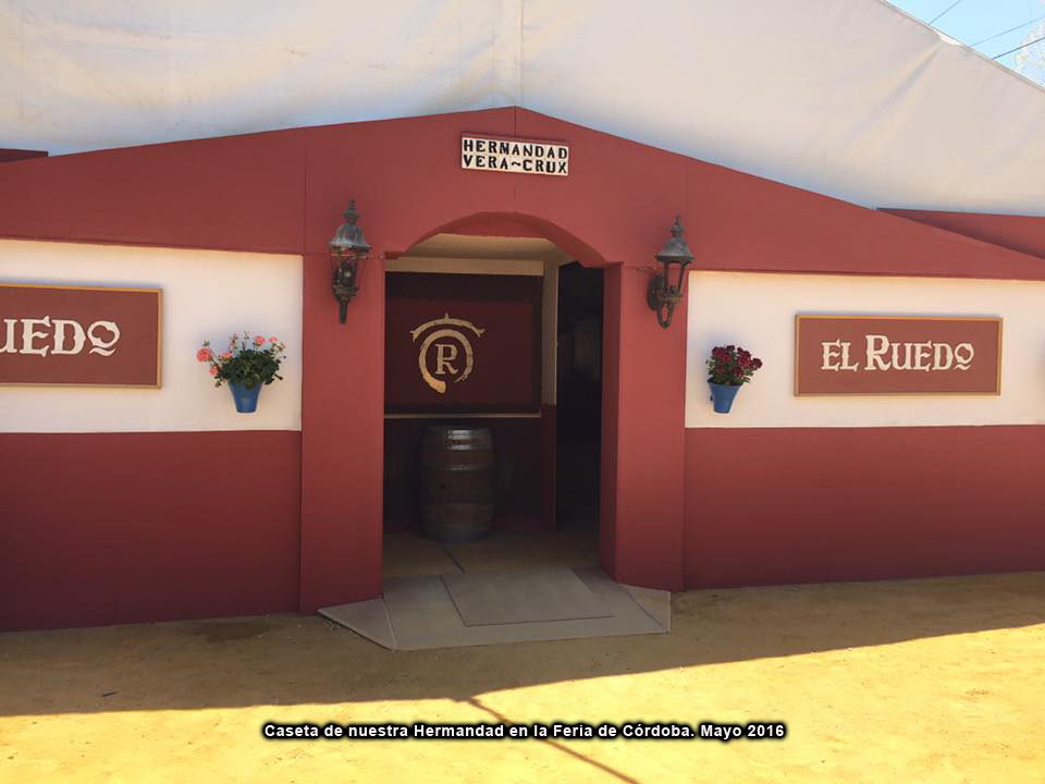 Una Feria más, y ya van 23 ediciones, nuestra Hermandad se hace presente en el Arenal para disfrutar con todos sus Hermanos y amigos de la presente edición de la Feria de Nuestra Señora de la Salud. Estamos donde siempre, en la calle Tendillas nº 2, y este año nos encontraréis con el nombre EL RUEDO. Estáis todos invitados a vuestra caseta, donde podréis degustar la cocina de la Vera-Cruz, y disfrutar con la buena música y mejor ambiente que viviremos estos días. Todos los Hermanos de la Hermandad, mayores de 18 años, disponen de un carnet nominativo con el que obtener descuentos en las bebidas durante toda la feria en nuestra caseta. Podéis retirarlo en la cocina de la caseta. Además allí mismo podéis reservar mesas para comidas de grupos al menos con un día de antelación. Os esperamos a todos en EL RUEDO. No faltéis.