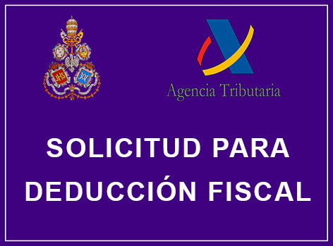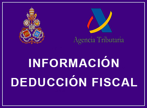 Nuestra Hermandad se encuentra acogida al Régimen Fiscal Especial de la Ley 49/2002, de las entidades sin fines lucrativos y de los incentivos fiscales al mecenazgo que posibilita que los hermanos y donantes puedan aplicarse en su declaración del IRPF la deducción prevista para las cuotas y donativos aportados a la Hermandad en cada ejercicio fiscal. Dicha desgravación fiscal consiste actualmente en un 80% hasta 150 euros y un 35% en el resto de base de deducción, pudiendo variar en otros ejercicios el porcentaje aplicado por la Agencia Tributaria.