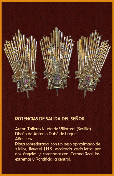 Se bendijo el 8 de Febrero de 1987 en la Parroquia de San José y Espíritu Santo, por S.E.R. el Obispo D. José Antonio Infantes Florido. Fueron padrinos de la bendición la Confraternidad de Hermandades de la Vera-Cruz, la Comunidad Parroquial de San José y Espíritu Santo y la Congregación de Religiosas Filipenses Hijas de María Dolorosa. El Señor estrenó la túnica de terciopelo granate bordada en oro por los hermanos de la Archicofradía, así como un juego de potencias en alpaca dorada. La Virgen del Dulce Nombre estrenó ese día la saya burdeos bordada en oro que utiliza actualmente el Lunes Santo.